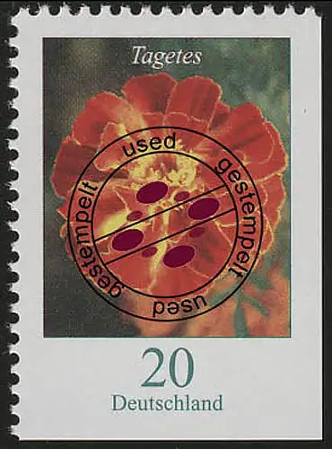 2471Eu Blumen 20 C Tagetes, rechts und unten geschnitten, gestempelt O