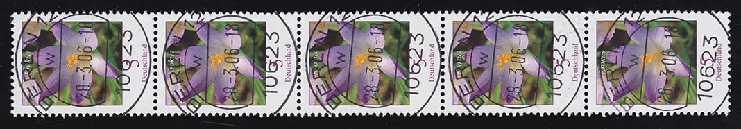 2480 Krokus als 5er-Streifen mit VS-O BERLIN 28.3.06 mit Nummer 190