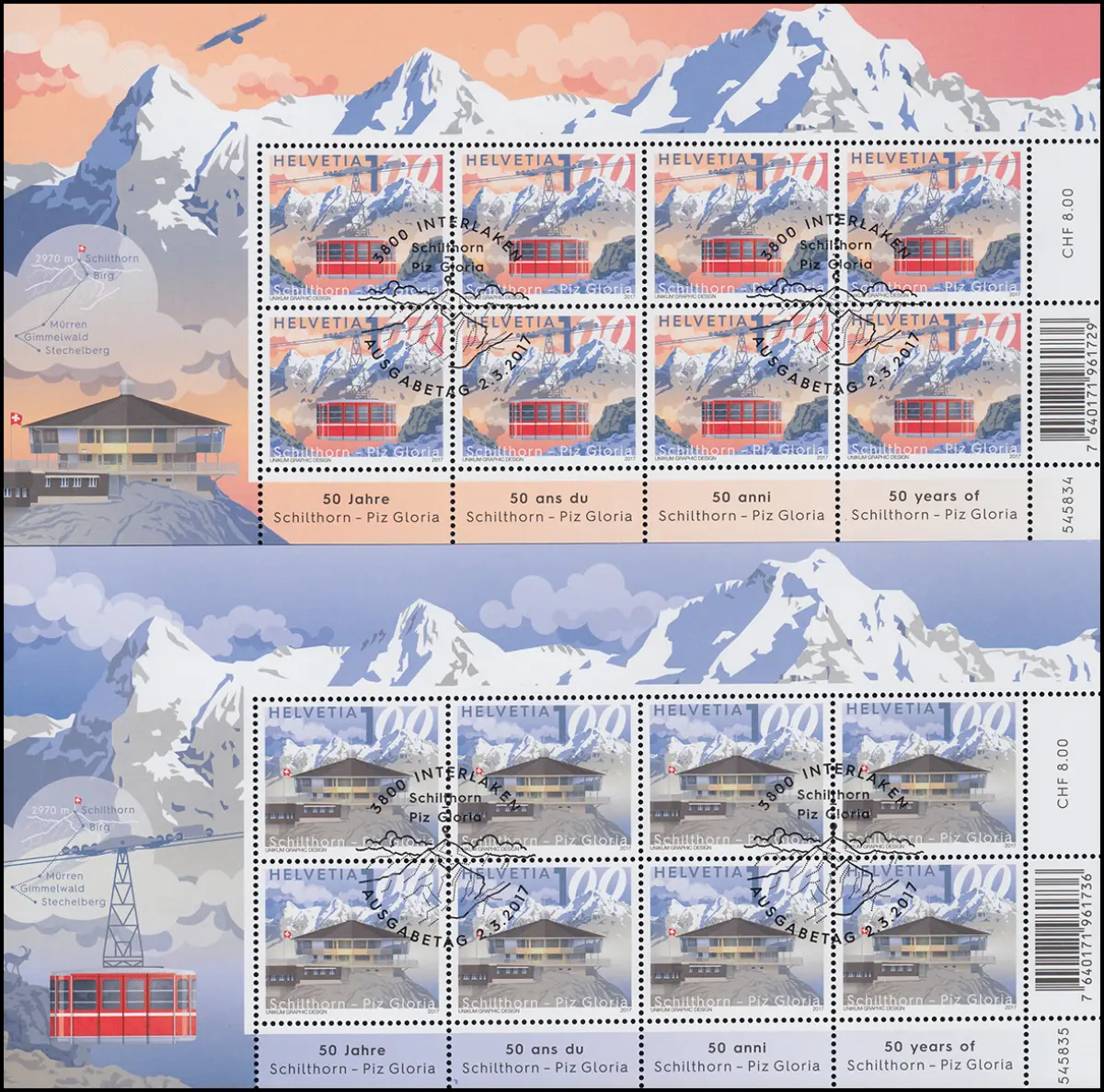 2483-2484 Schilthornbahn zum Piz Gloria, Kleinbogen-Satz ESST Interlaken 2.3.17