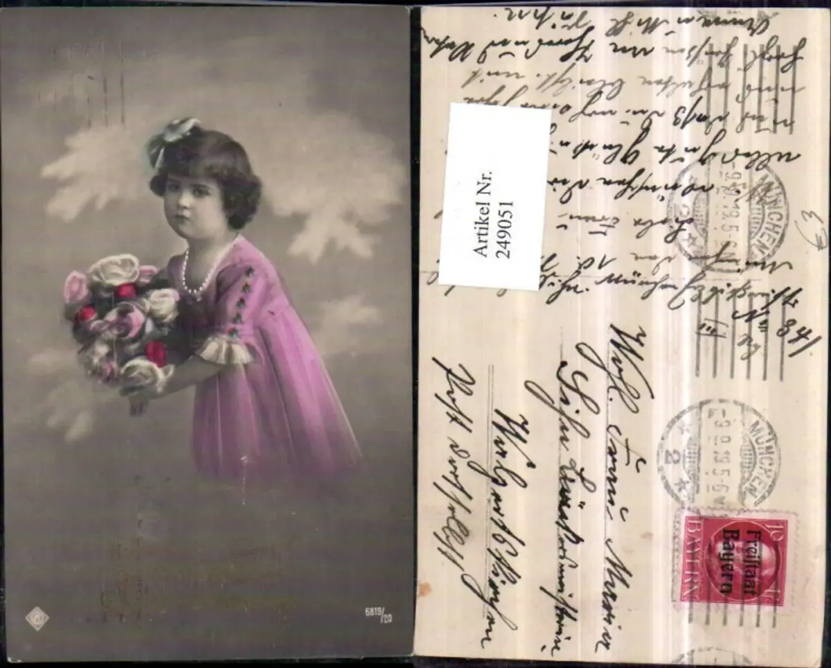 249051,Namenstag Mädchen m. Kleid Rosenstrauß Rosen