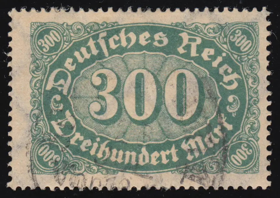 249I Infla 300 Mark mit PLF I h in Reich unten mit Häkchen, O, geprüft Peschl