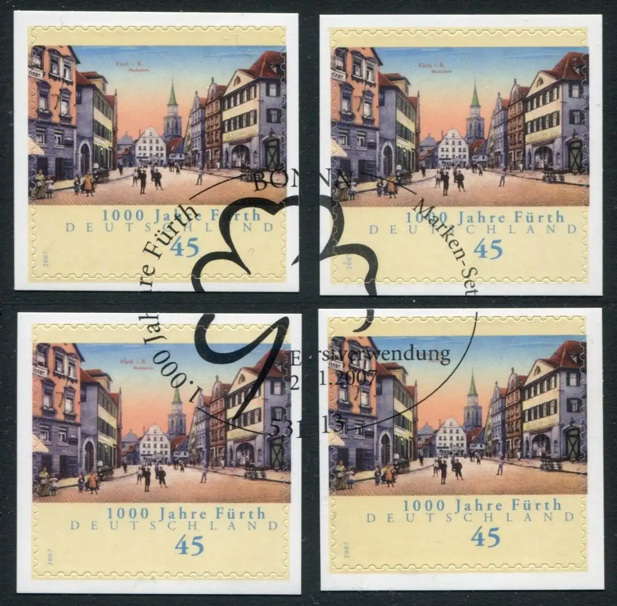 2584 Fürth SELBSTKLEBEND auf NEUTRALER Folie: Set mit allen 4 Eck-EV-O Bonn