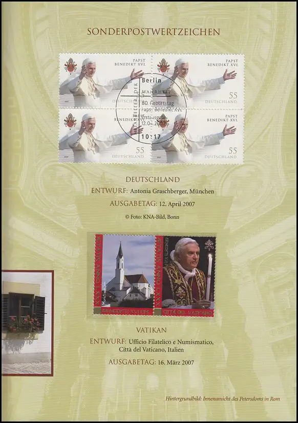 2599 Papst Benedikt XVI. - Erinnerungsblatt EB 3/2007