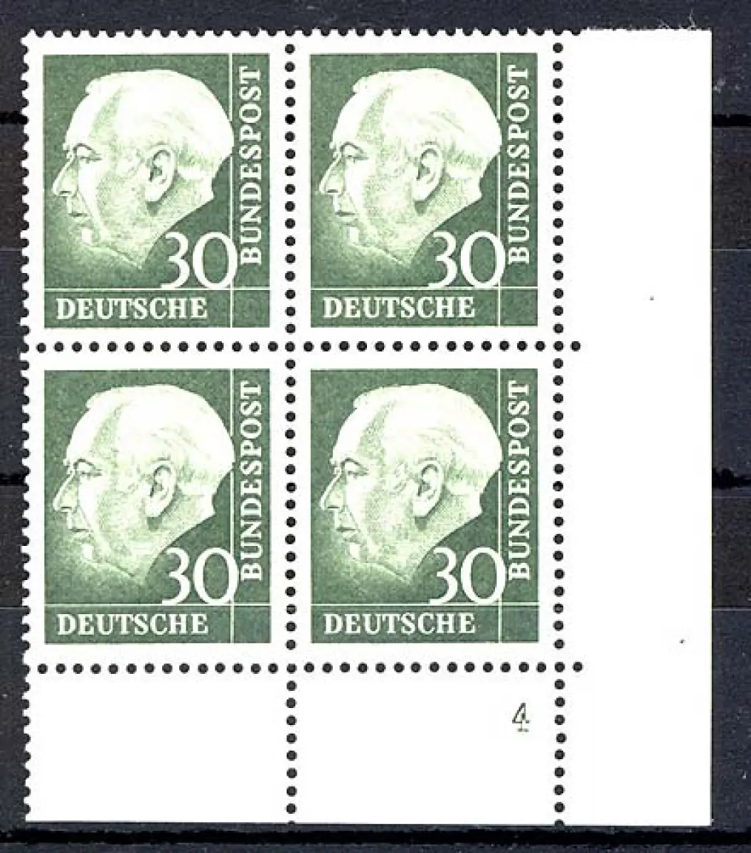 259w Heuss II 30 Pf Eck-Vbl. ur ** Formnummer 4