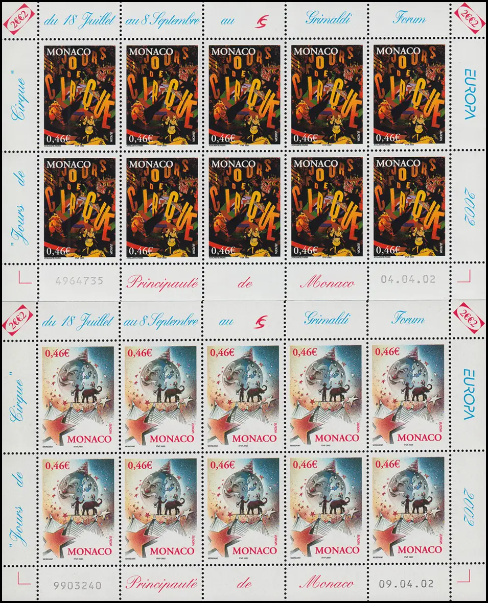 2600-2601 EUROPAUNION / CEPT Zirkus 2002, Kleinbogen-Satz **