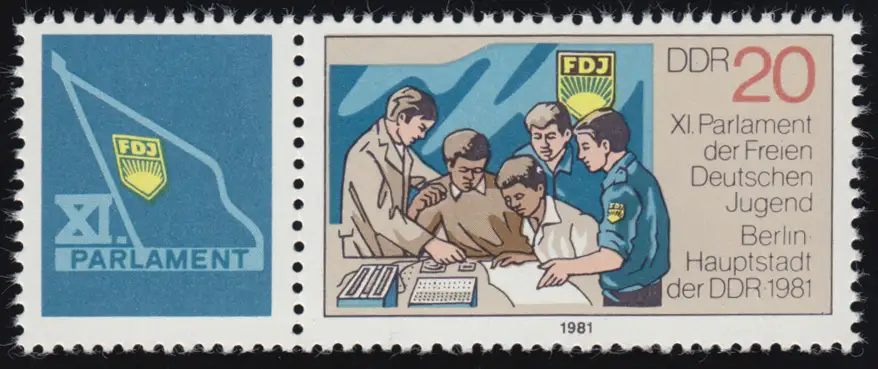 2610 Parlament der FDJ 20 Pf. mit PLF heller Fleck im Haar, Feld 6, **