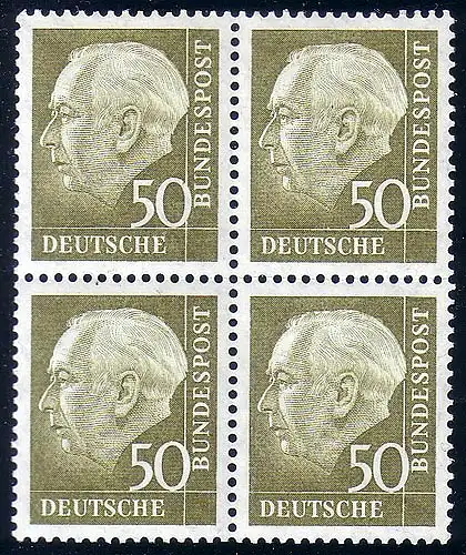 261v Heuss II 50 Pf Viererblock ** postfrisch