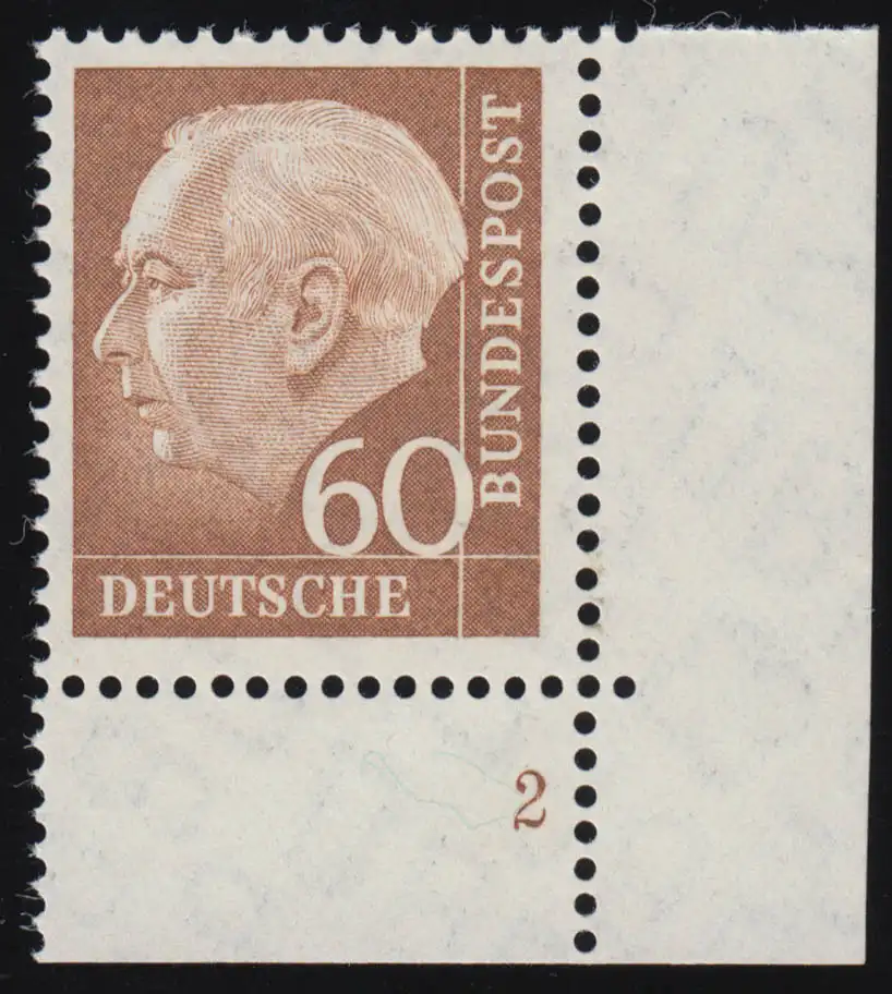 262w Heuss II 60 Pf Ecke ur mit Formnummer FN 2, postfrisch **