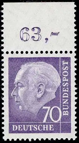 263v Heuss II 70 Pf Oberrand ** postfrisch