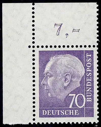 263w Heuss II 70 Pf Ecke ol ** postfrisch