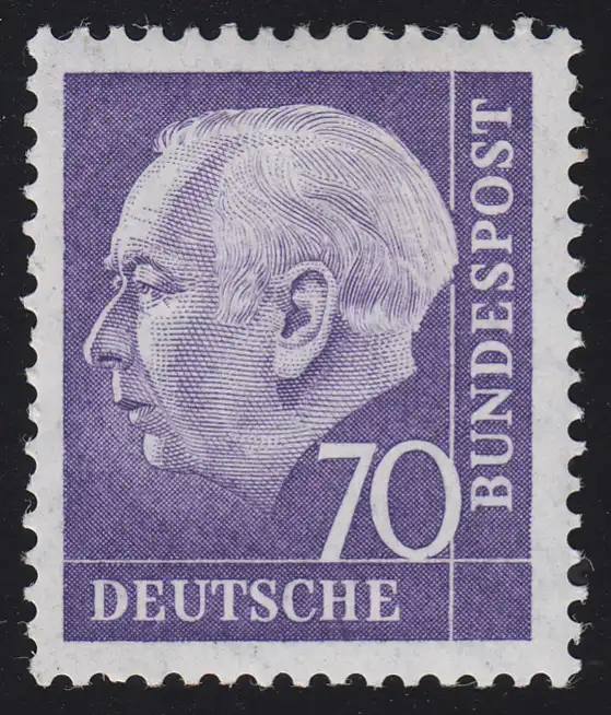 263w Heuss II 70 Pf Marke mit glatter Gummierung, ungerade 4-stellige Nr., **