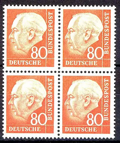 264w Heuss II 80 Pf Viererblock ** postfrisch