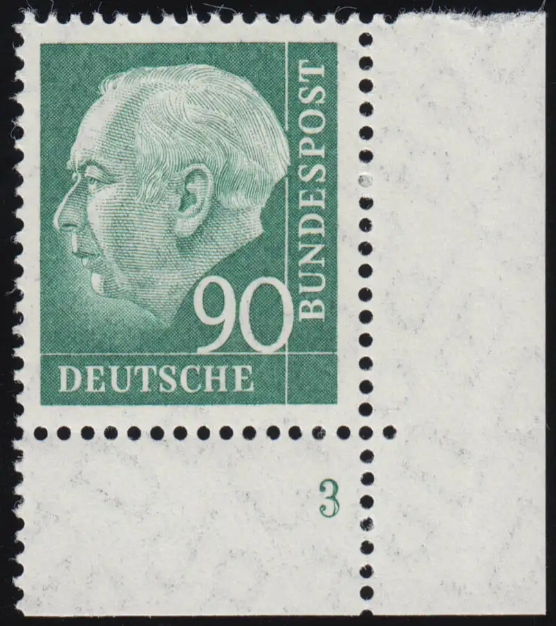 265w Heuss II 90 Pf Ecke ur mit Formnummer FN 3, postfrisch **