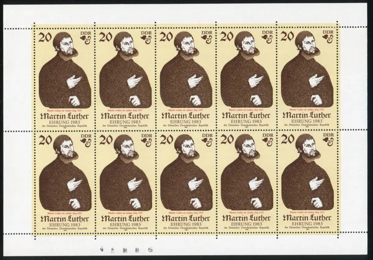 2755III Luther-Kleinbogen 1982, mit PLF III, ** postfrisch