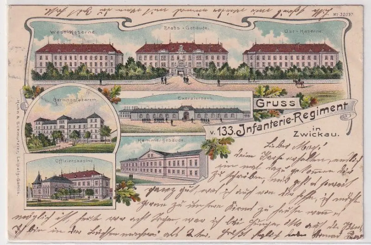 27779 Ak Lithographie Gruß vom 133.Infanterie Regiment in Zwickau 1905