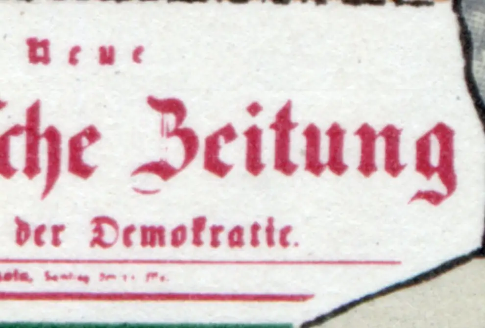 Plattenfehler: senkrechte Striche in Z von Zeitung gebrochen.