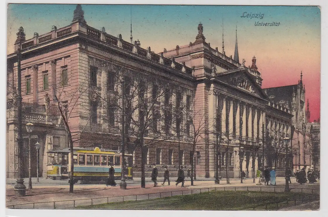 28347 Ak Leipzig Universität mit Straßenbahn davor um 1910