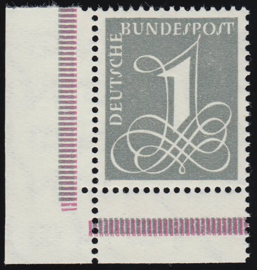 285YI Ziffernzeichnung 1 Pf Wasserzeichen 4Y Bogenecke unten links postfrisch **