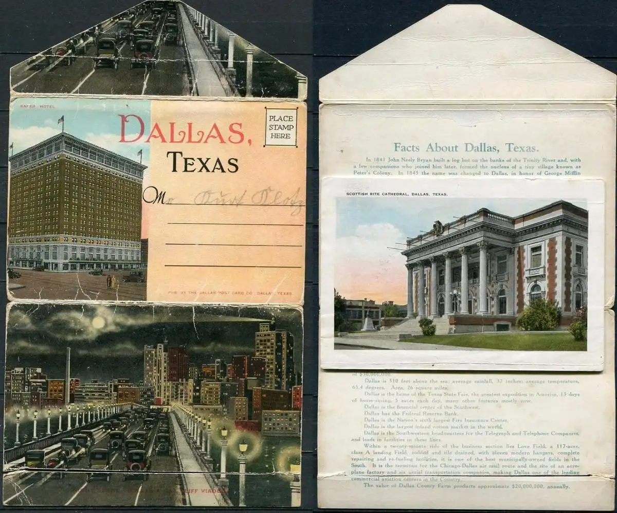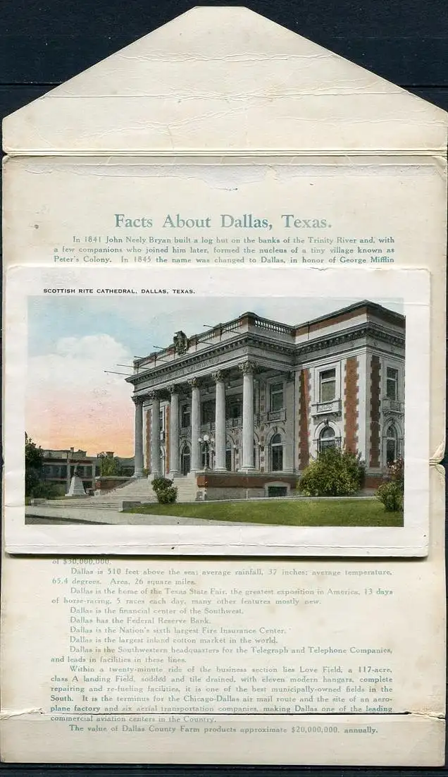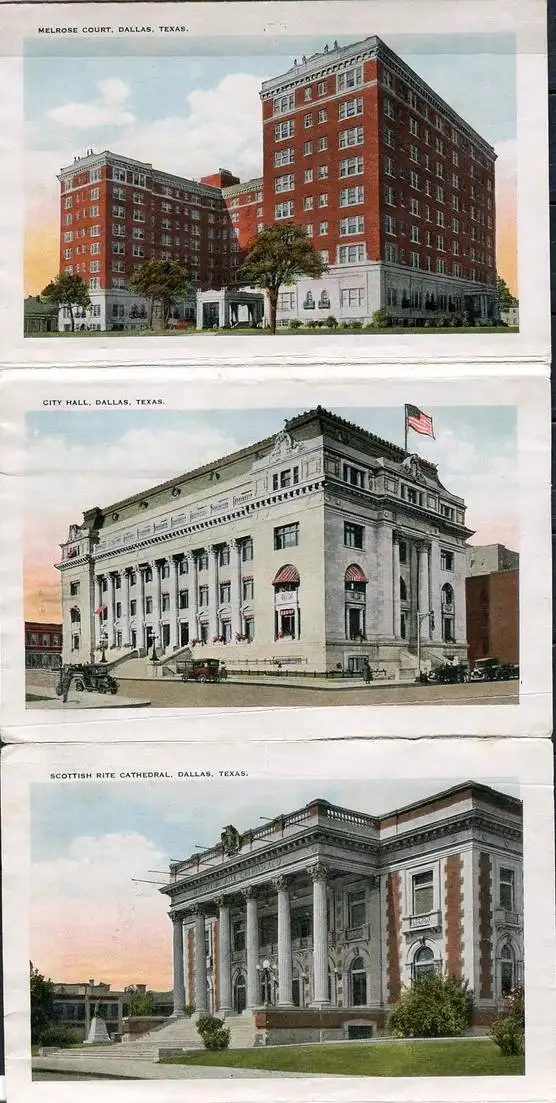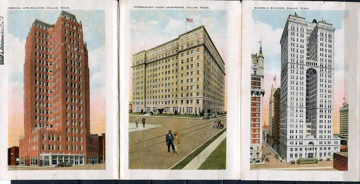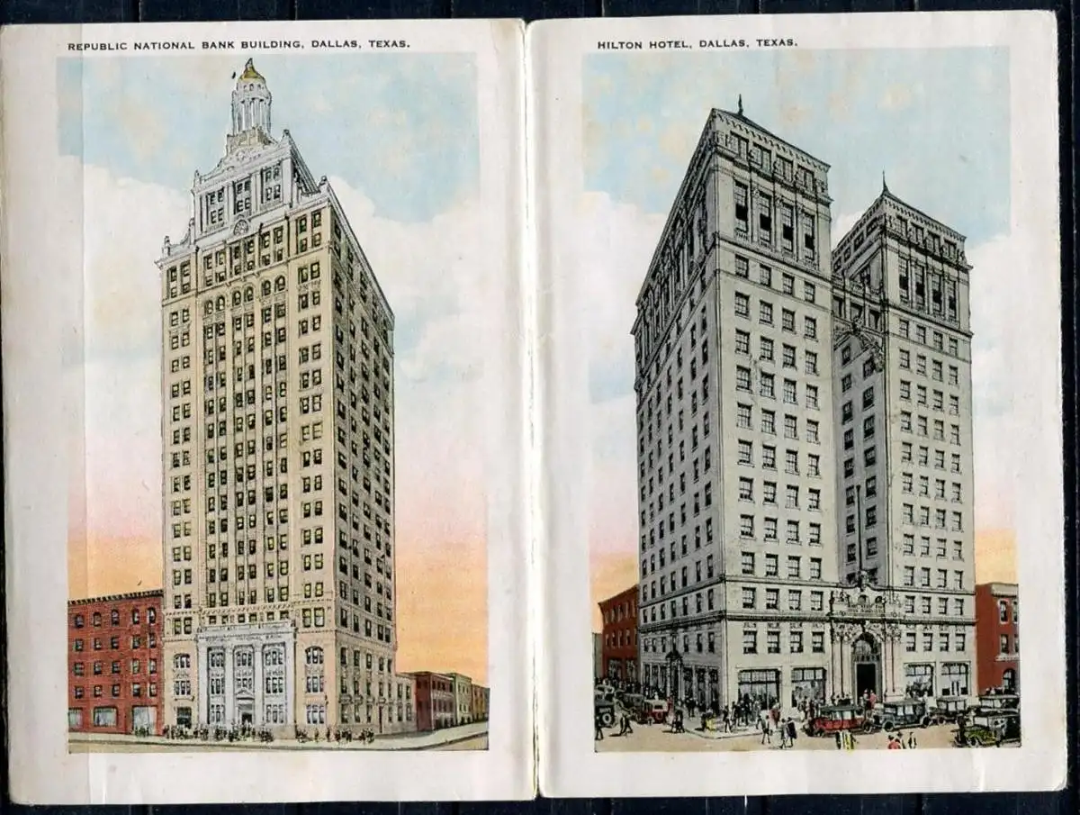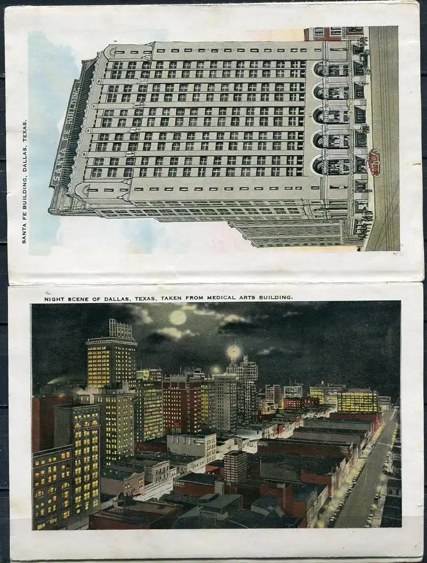 Bild 2: Medical Arts Building - Stoneleight Court Apartments - Magnolia BuildingBild 3: Adolphus Hotel And Annex - Baylor Memorial HospitalBild 4: Zoo Park - Dallas Hall, Methodist UniversityBild 5: Melrose Court - City Hall - Scottish Rite CathedralBild 6: Santa Fe Building - Night Scene Of Dallas, Taken From Medical Arts BuildingBild 7: Republic National Bank Building - Hilton HotelVerlag: Falze z. T. eingerissen - Erhaltung - siehe Scans