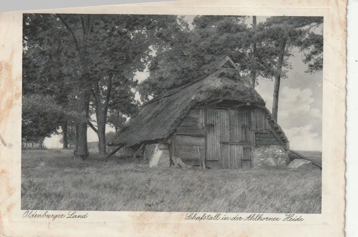 2907 GROSSENKNETEN - AHLHORN, Schafstall in der Ahlhorner Heide, 1939