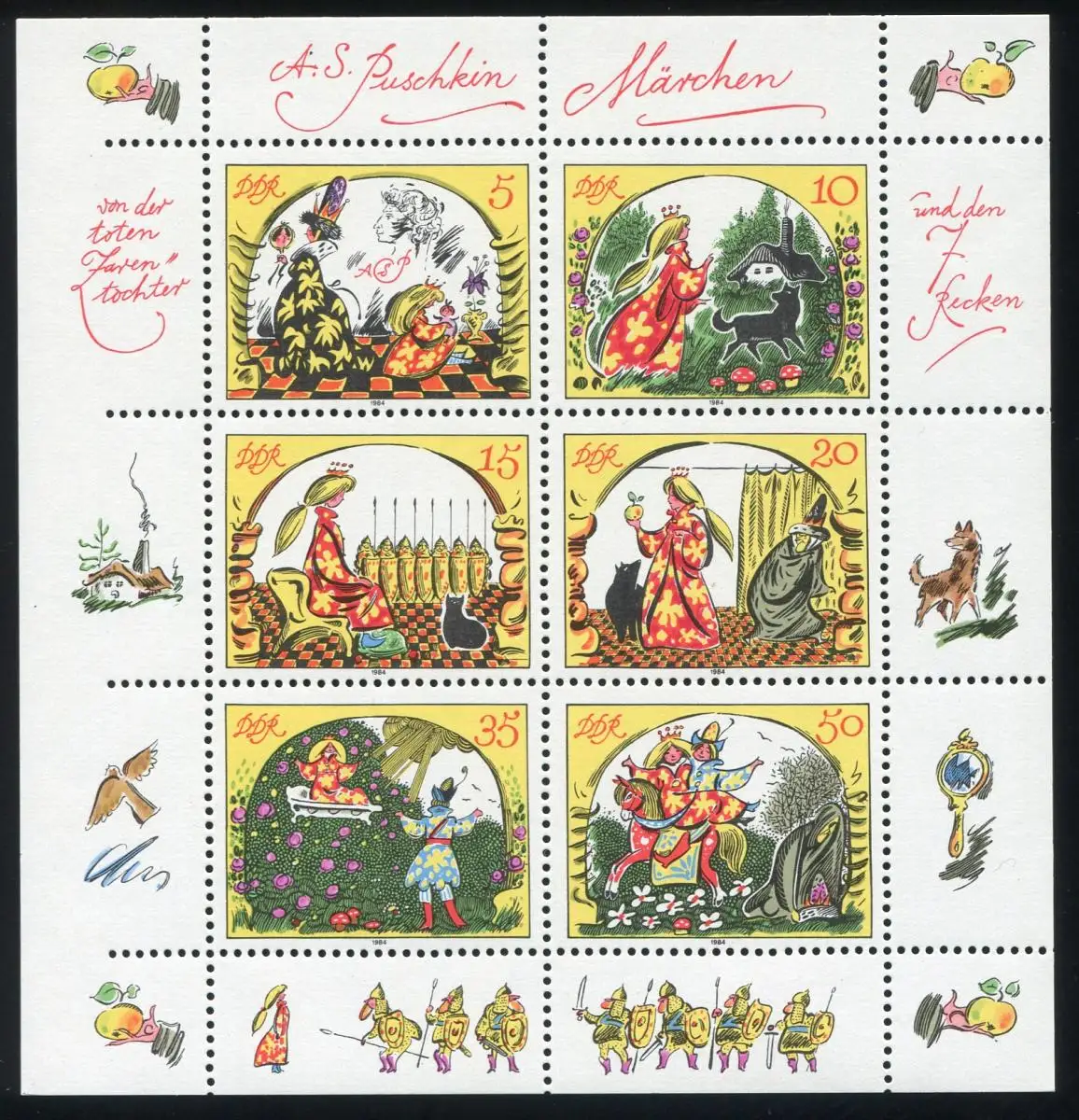 2914-2919 Märchen-KB links ndgz. mit PLF auf 2914: roter Punkt unter der 5, **