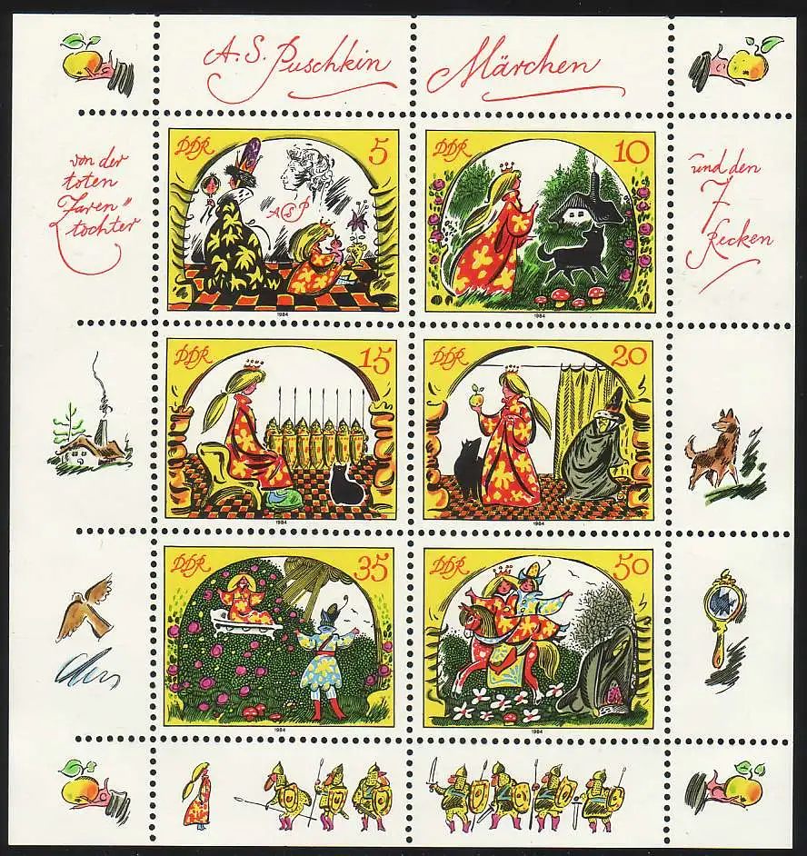 2914-2919 Märchen-Kleinbogen: links nicht durchgezähnt, **