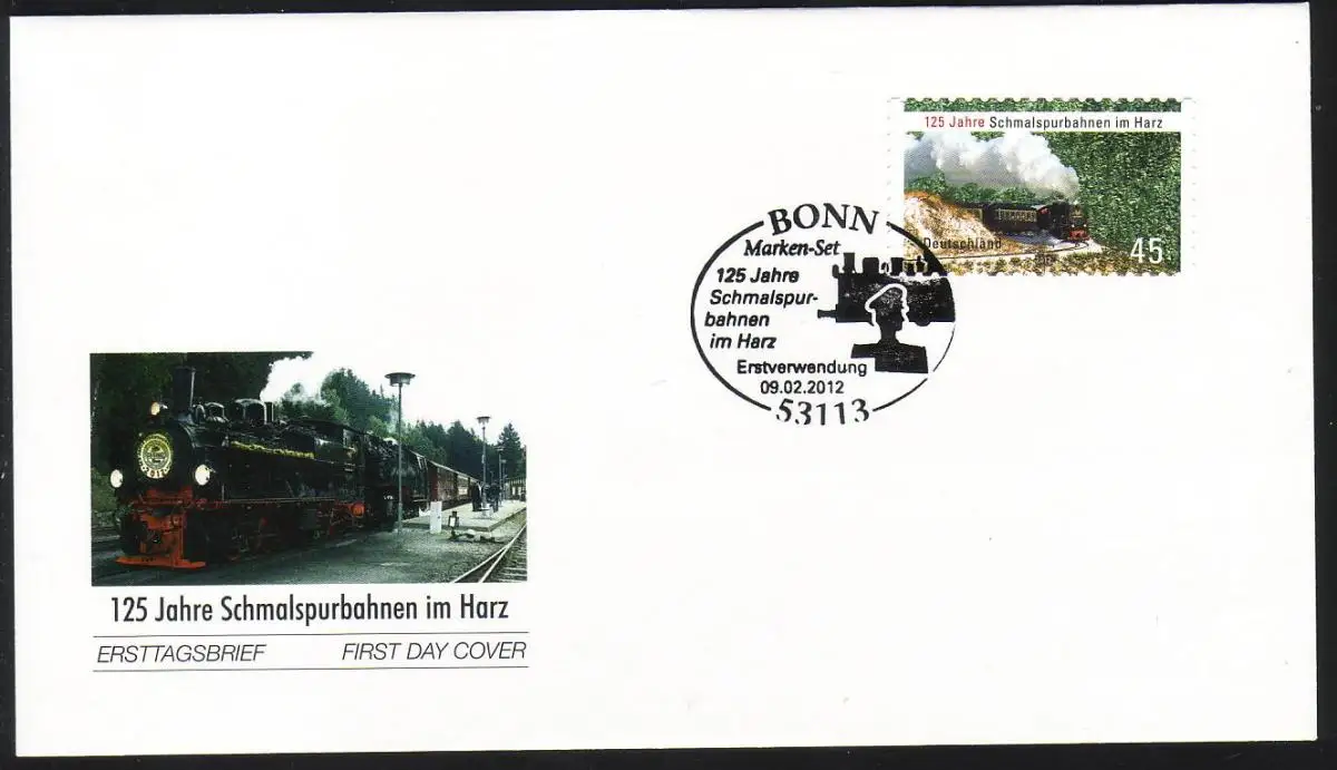 2916 Harzer Schmalspurbahn selbstklebend aus FB 20, FDC EV-O Bonn