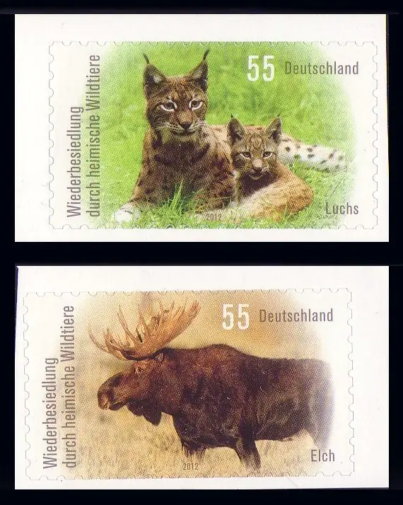 2921-2922 Luchs und Elch aus FB 21, SELBSTKLEBEND, Satz ** postfrisch