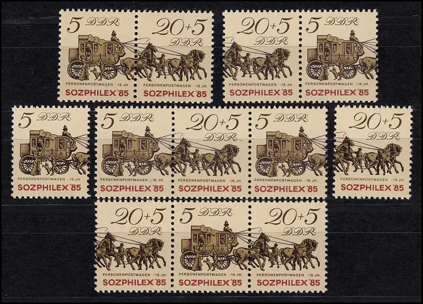 2965-2966 SOZPHILEX Postkutsche 1985, 4 Zusammendrucke + 2 Ezm, Set postfrisch
