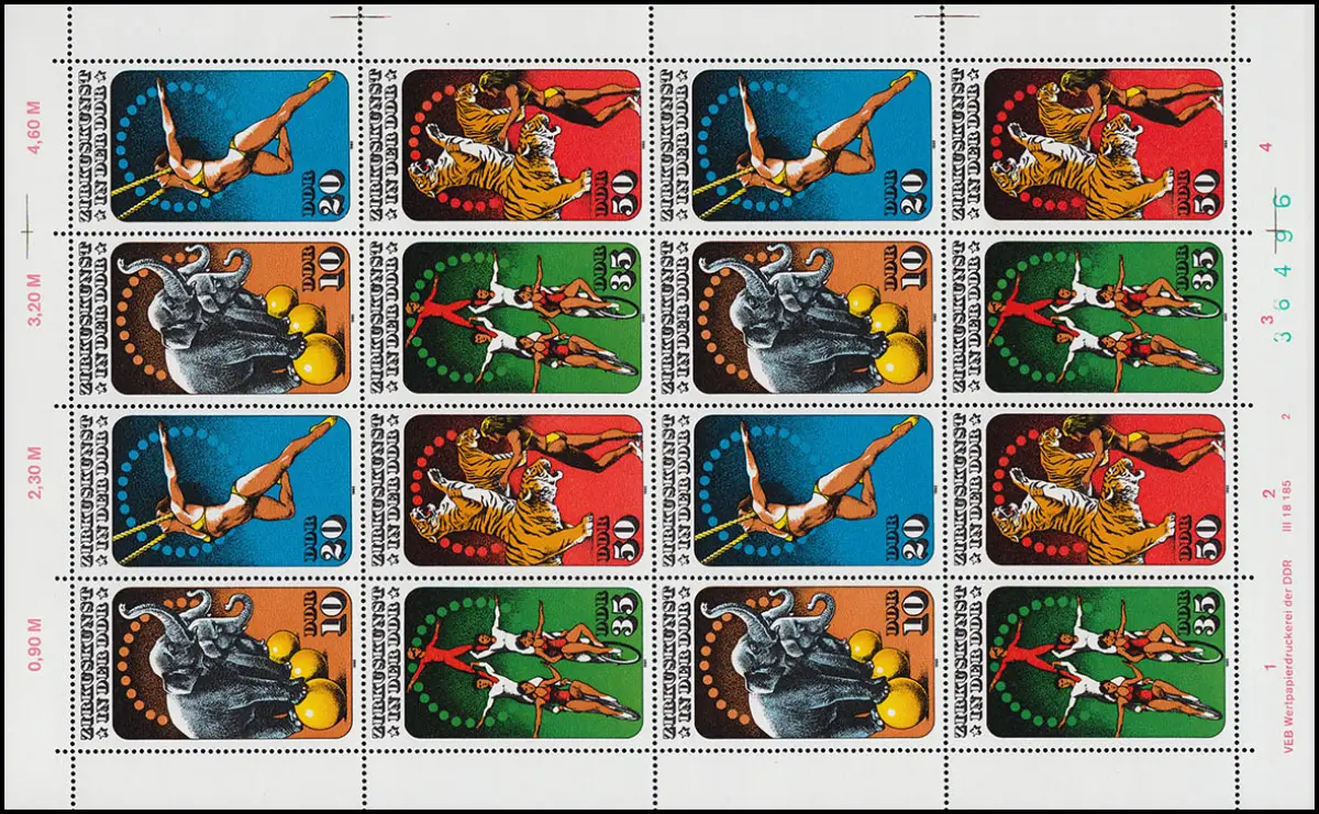 2983-2986 Zirkuskunst 1985, ZD-Bogen, FN2 mit grünen Randziffern, **