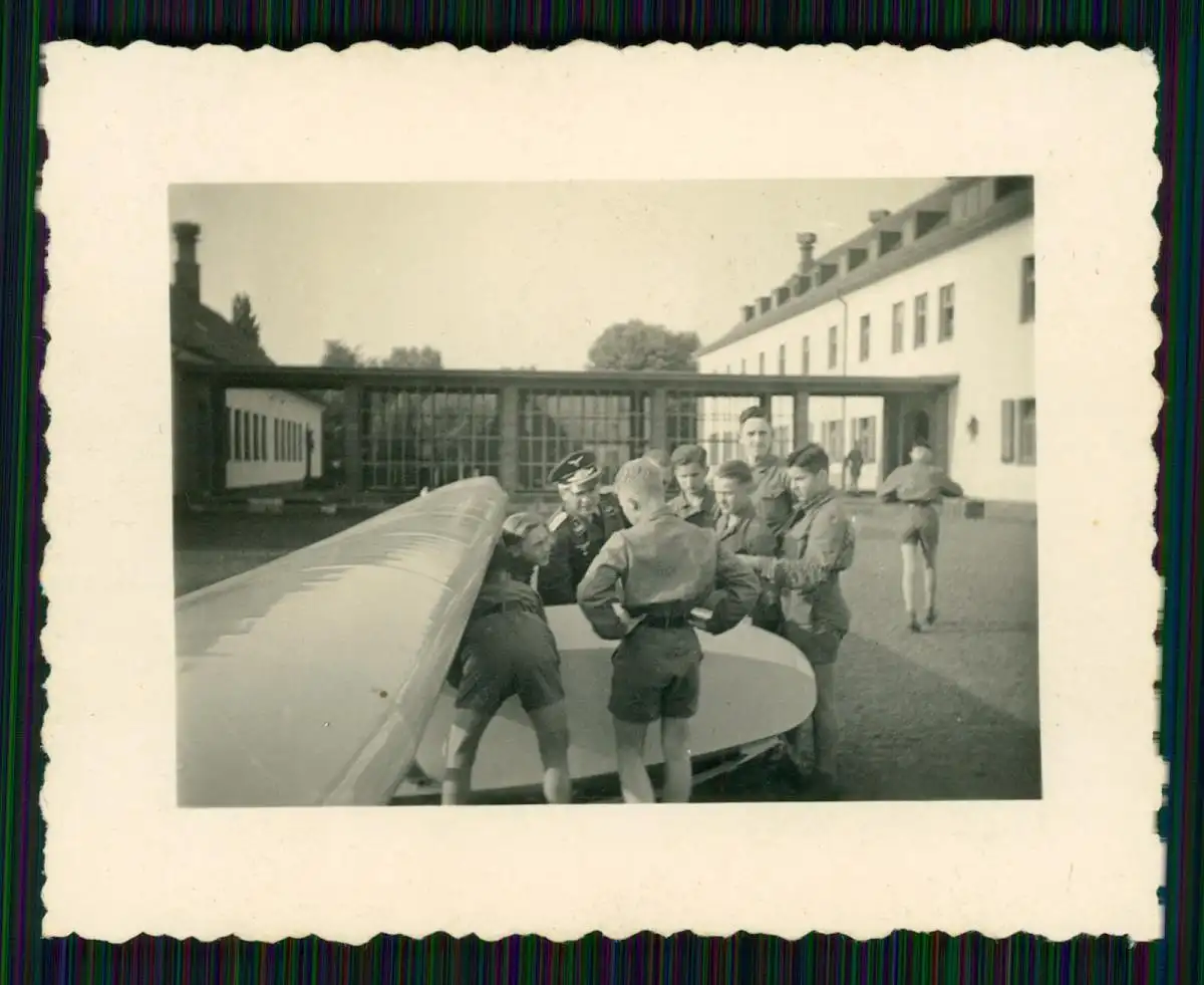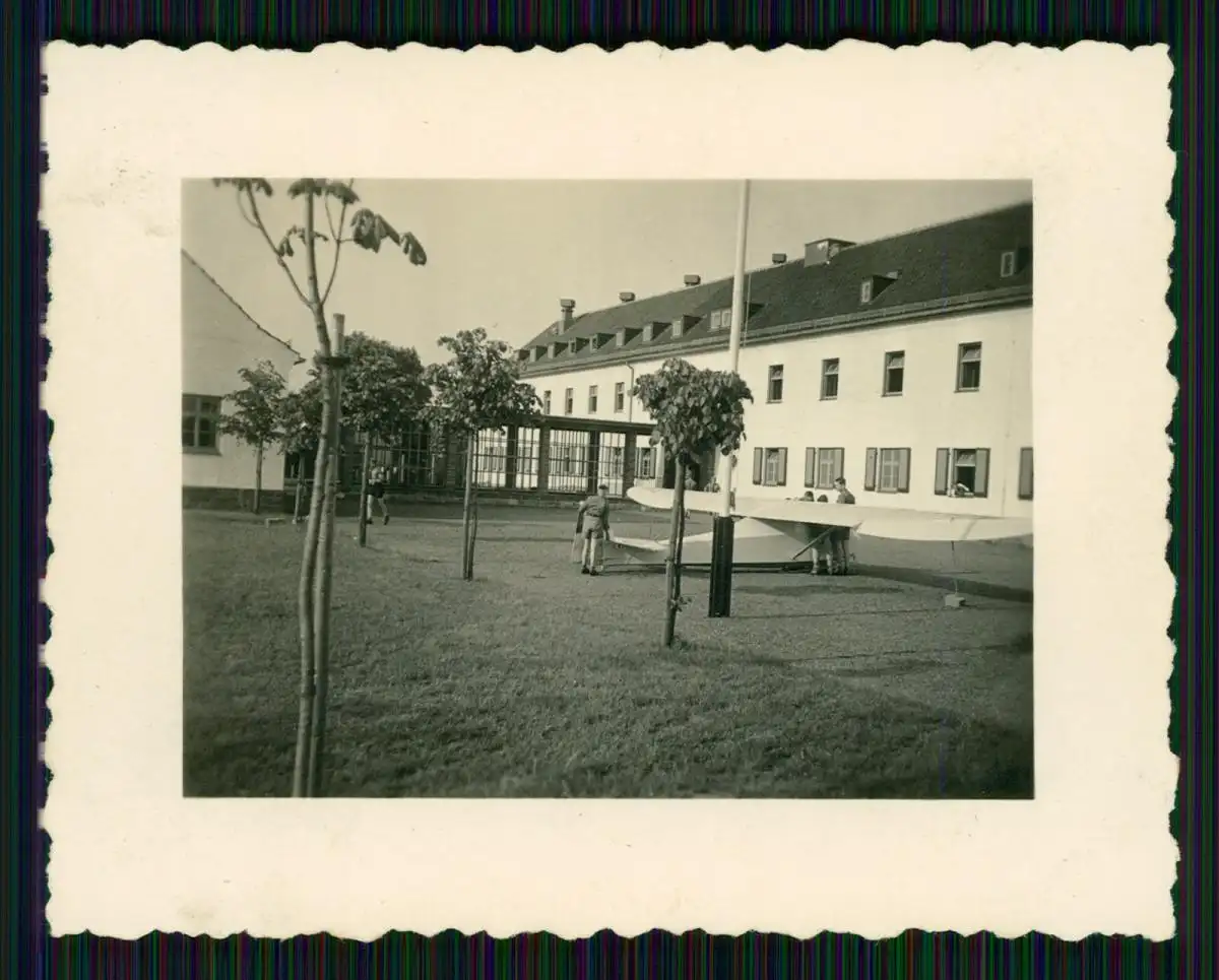 2x Foto - Jungs kurze Hose mit Segelflugzeug - Luftwaffe Kaserne o.ä. .....