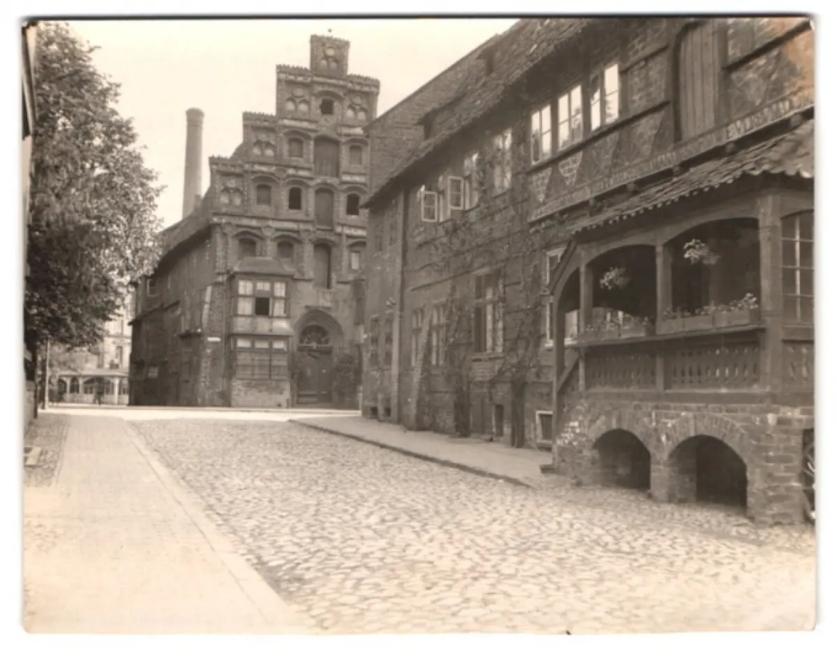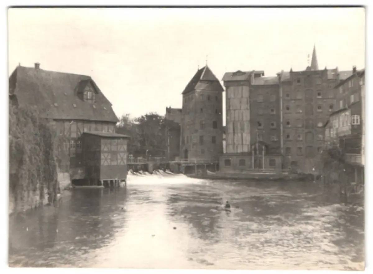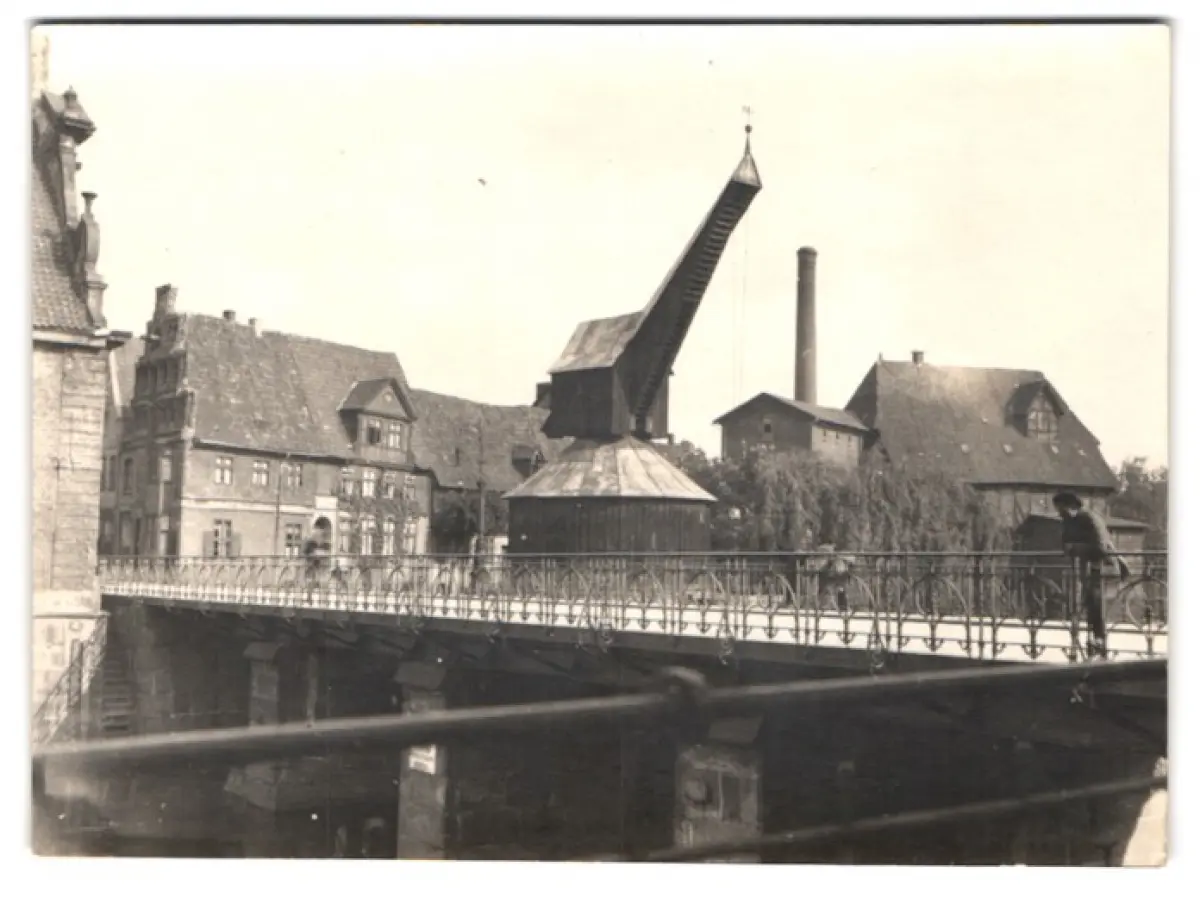 3 Fotografien Ansicht Lüneburg, alter Kran im Hafen, am Wehr, am Werderthor, 1926