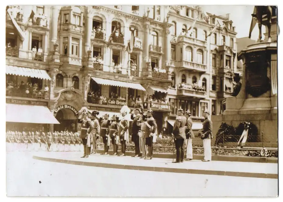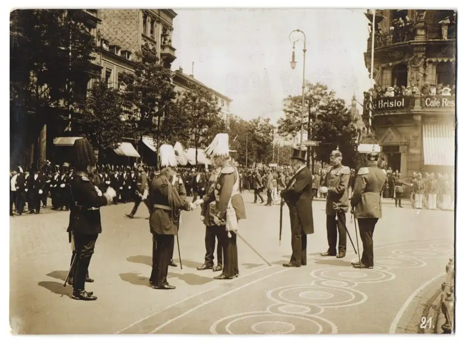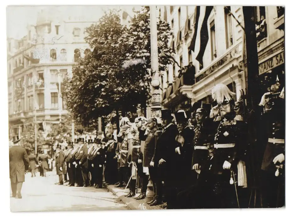 3 Fotografien G. Mertens, Aachen, Ansicht Aachen, Theaterplatz, Parade mit Kaiser Wilhelm II. zur Denkmal-Enthüllung
