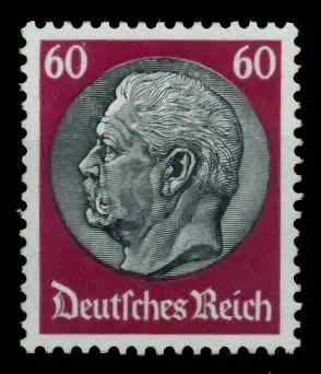 60 Pfg Wert aus der Freimarkenausgabe Hindenburg-Medallion, etwas höher signiert, Zähnung rechts nicht ganz perfekt