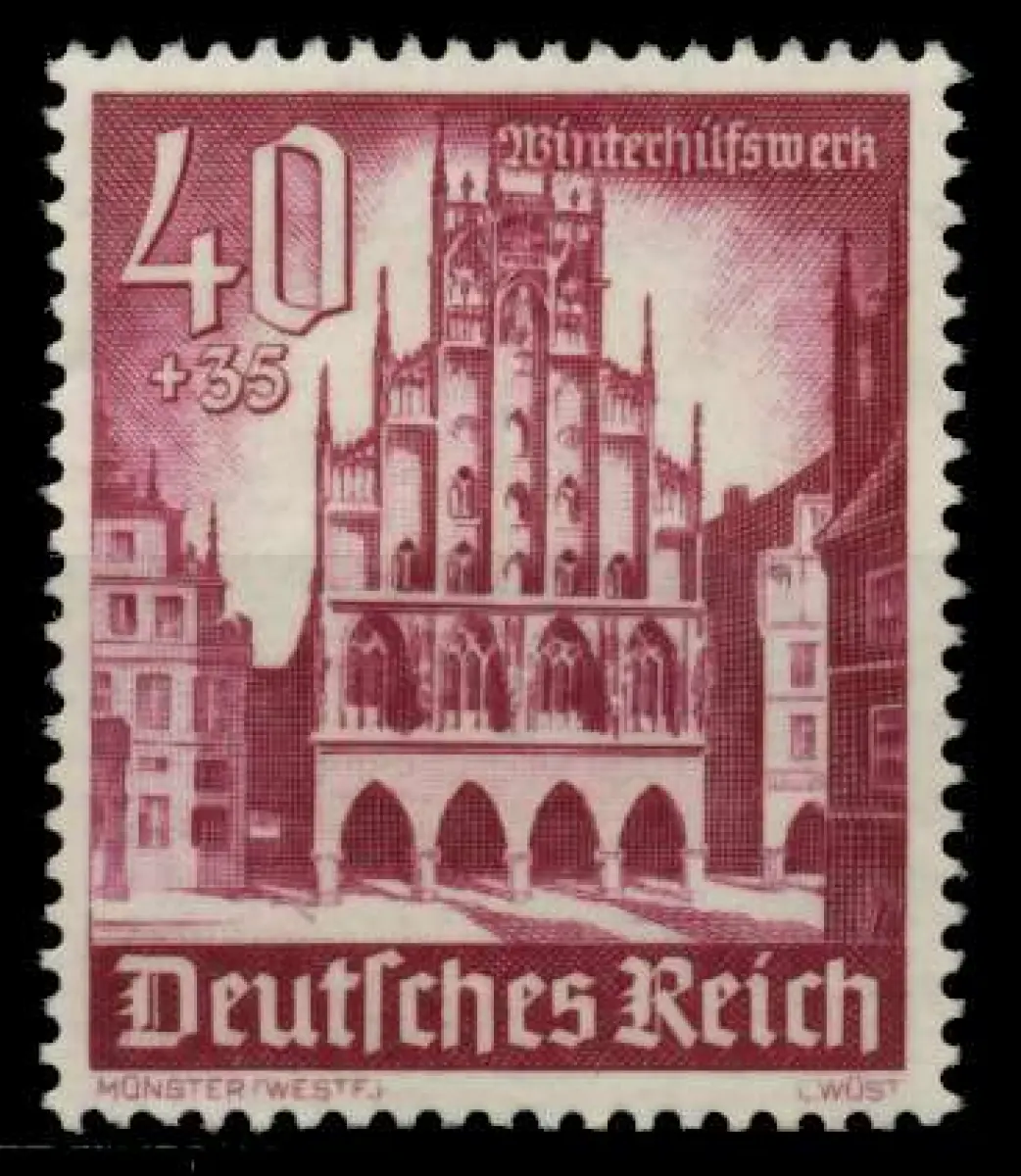40+35 Pfg Wert aus der Ausgabe Winterhilfswerk 1940 - Bauwerke - Rathaus Münster