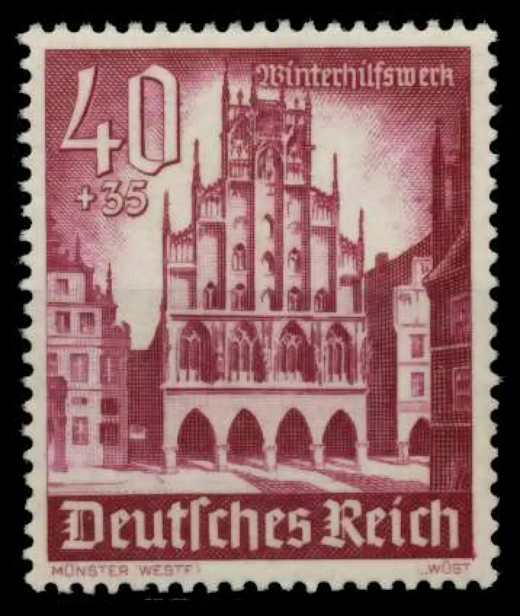 40+35 Pfg Wert aus der Ausgabe Winterhilfswerk 1940 - Bauwerke - Rathaus Münster