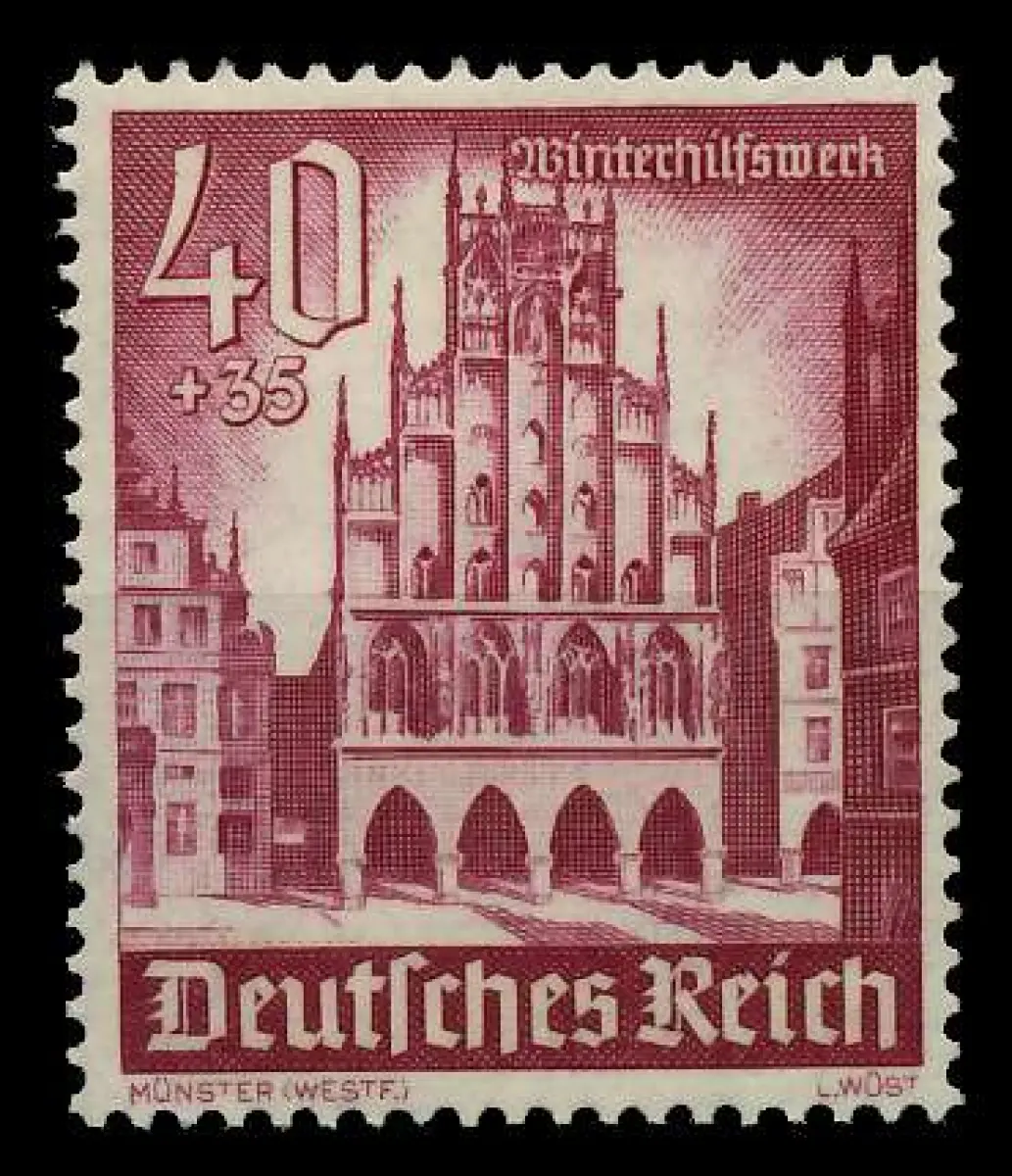 40+35 Pfg Wert aus der Ausgabe Winterhilfswerk 1940 - Bauwerke - Rathaus Münster