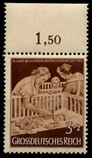 3+2 Pfg Wert aus der Ausgabe 10 Jahre Hilfswerk "Mutter und Kind"