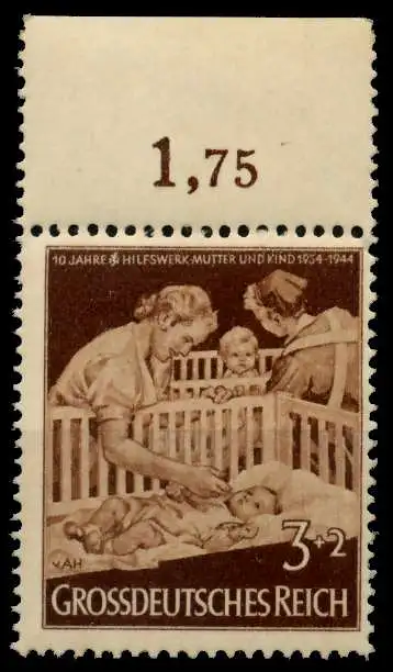 3+2 Pfg Wert aus der Ausgabe 10 Jahre Hilfswerk "Mutter und Kind"