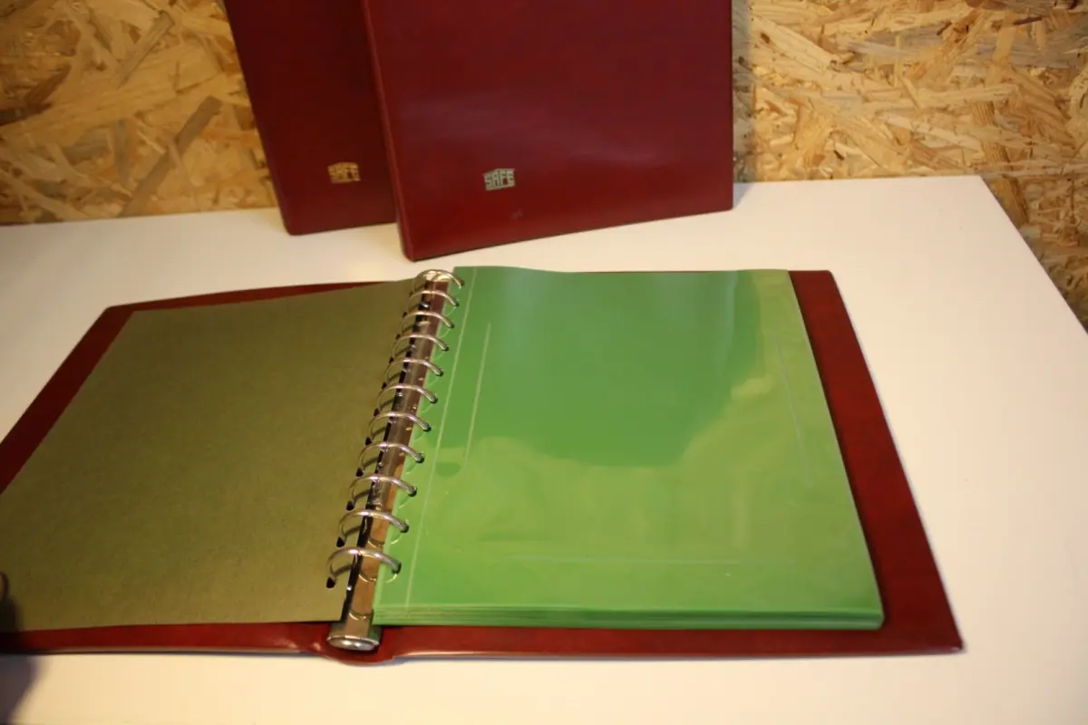leere gut erhaltene Alben mit Gebrauchsspuren, mit 35 Hüllen für ETB + grüne Zwischenblätter, Hüllen können leicht gelblich sein