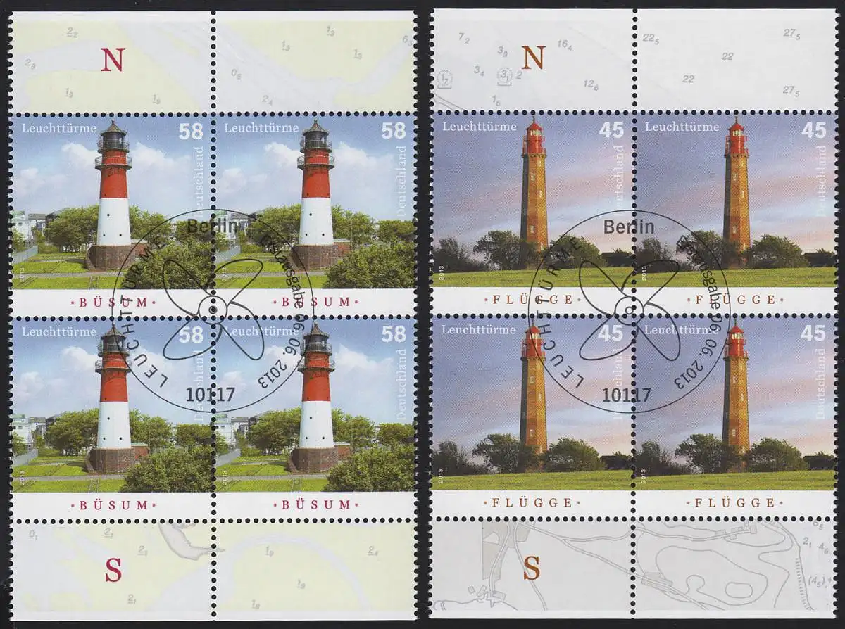3010-3011 Leuchtturm Flügge / Büsum je Viererblock mit zentrischem ESST Berlin