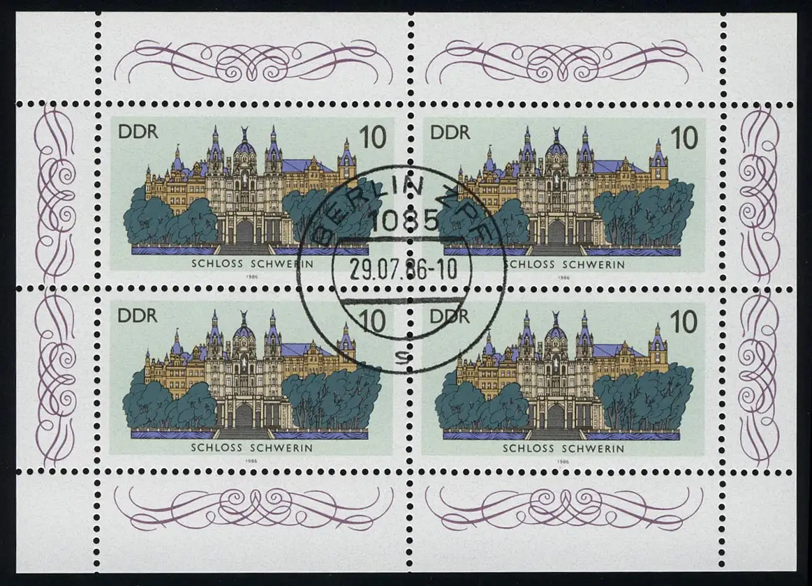 3032 Schlösser-Kleinbogen Schwerin 4x 10 Pf 1986, VS-O Berlin ZPF