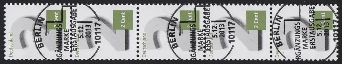 3042I Zwei Cent 5er-Streifen mit GERADER Nummer, ESSt Berlin