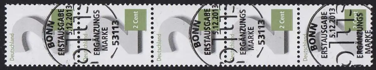 3042I Zwei Cent 5er-Streifen mit GERADER Nummer, ESSt Bonn