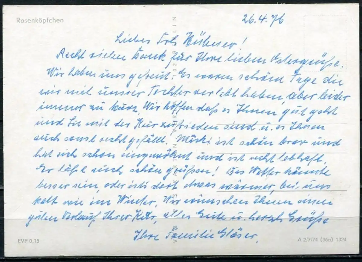 Verlag: VEB Postkarten - Verlag 102 Berlin A 2/ 7/ 74 (36a) 1324Erhaltung - siehe Scans