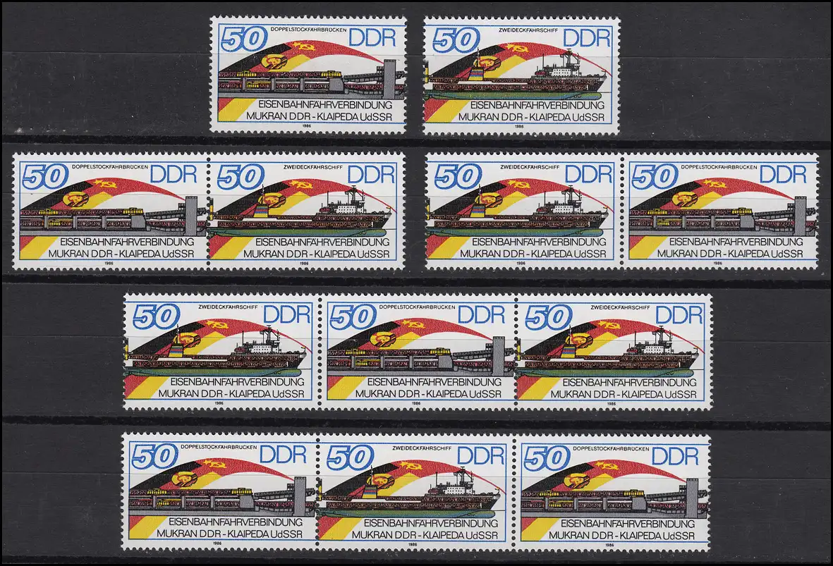 3052-3053 Eisenbahnfähre, 4 Zusammendrucke + 2 Ezm, Set postfrisch **