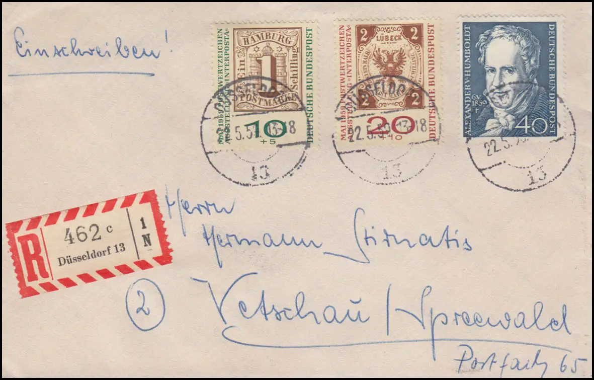 310-311 INTERPOSTA mit 309 Humboldt als MiF auf R-FDC 22.5.1959 nach Vetschau