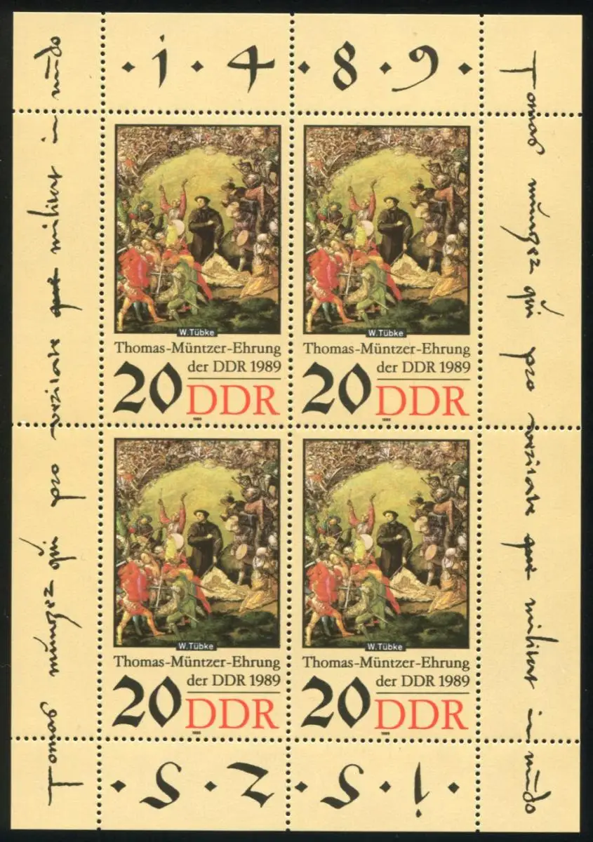 3271 Müntzer-Kleinbogen 4x20 Pf: langer senkrechter Strich Felder 2 und 4, **