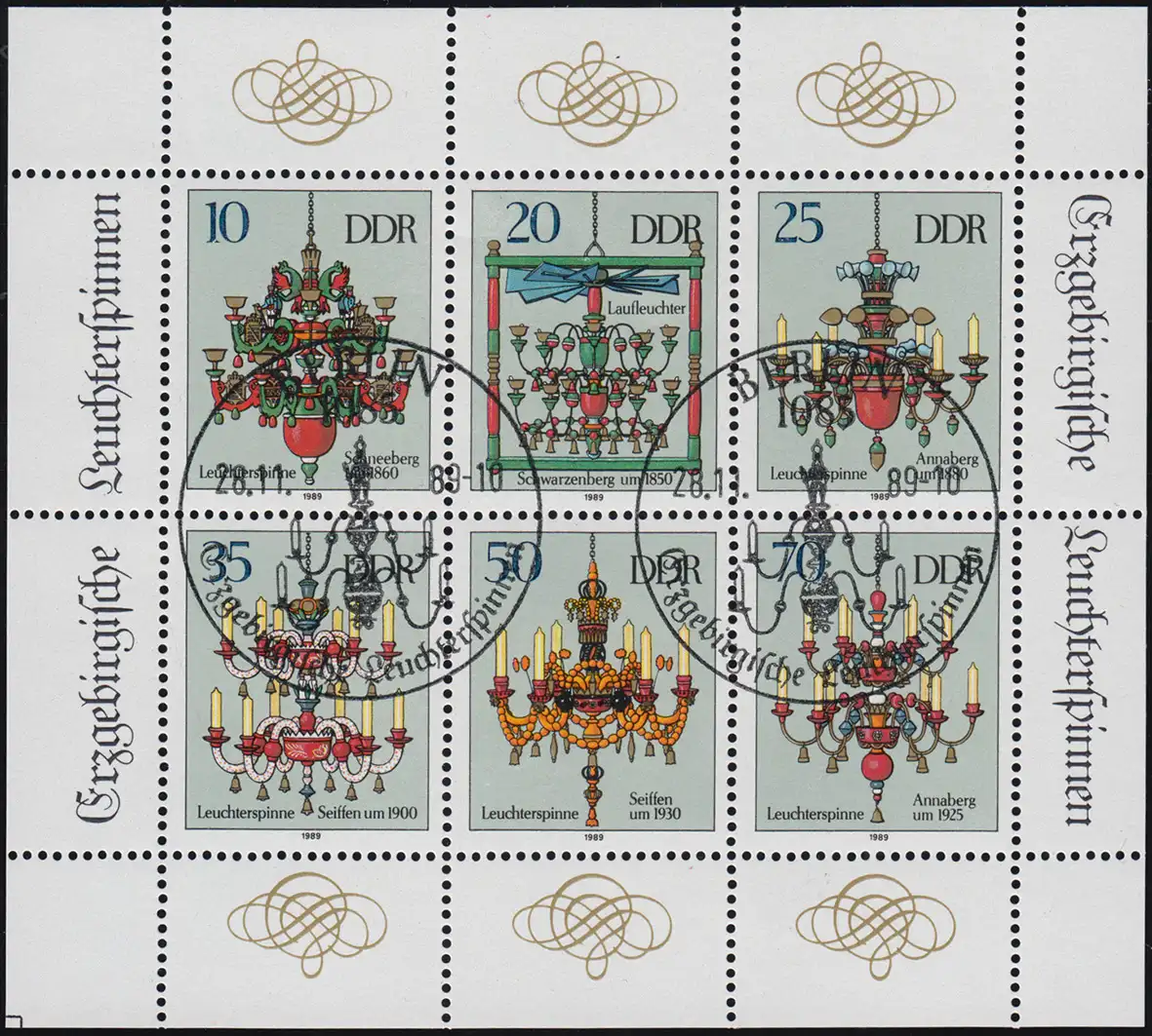 3289-3294 Leuchterspinnen Kleinbogen mit Markierung links unten, ESST