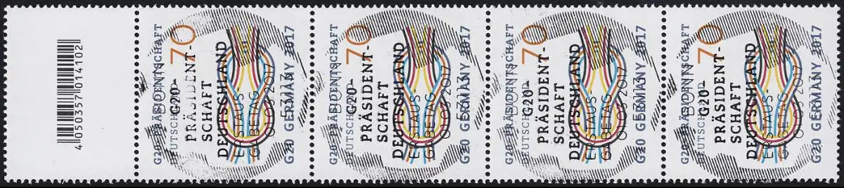 3291 G20-GERMANY, 4er-Streifen mit Nummer und Codierfeld, ESSt Bonn